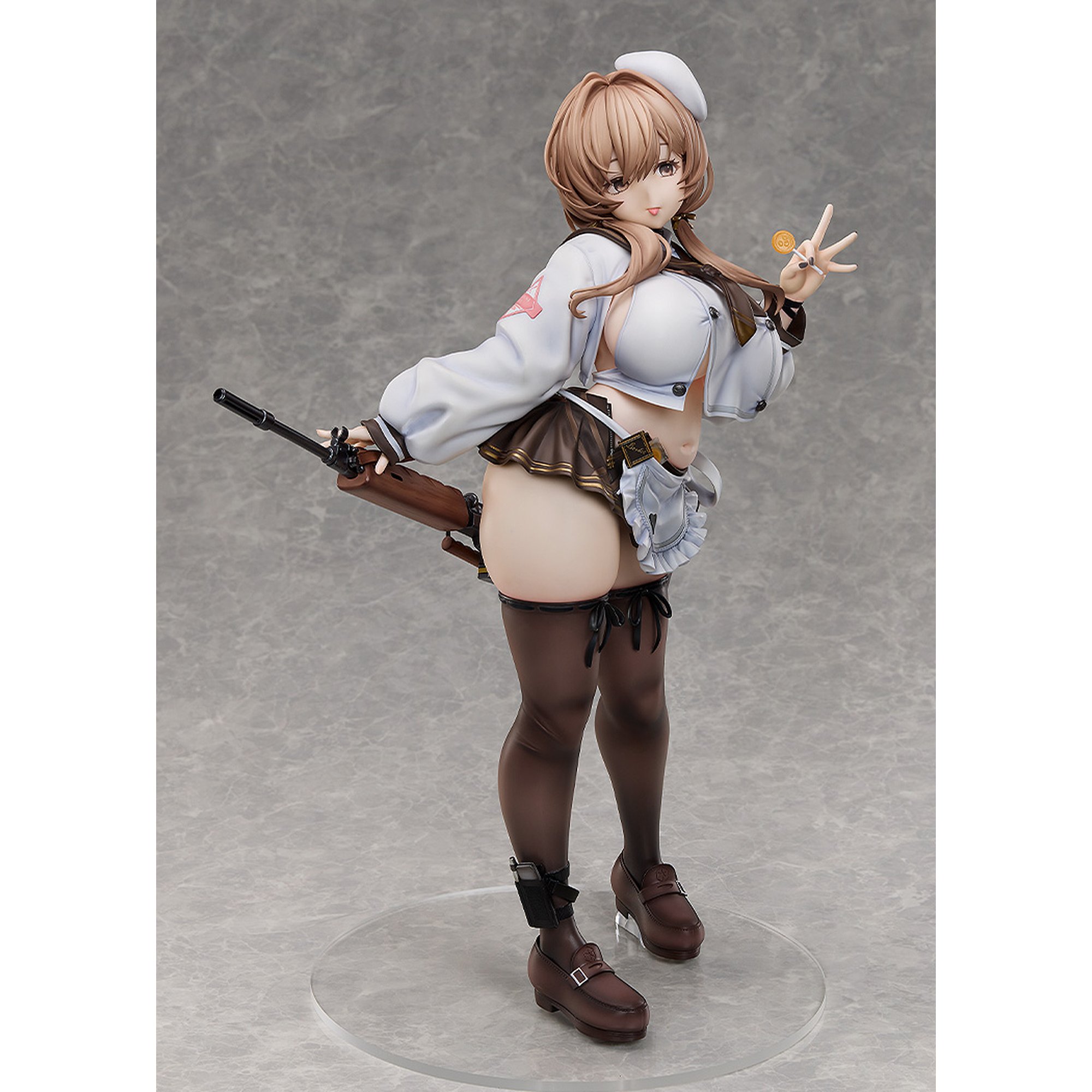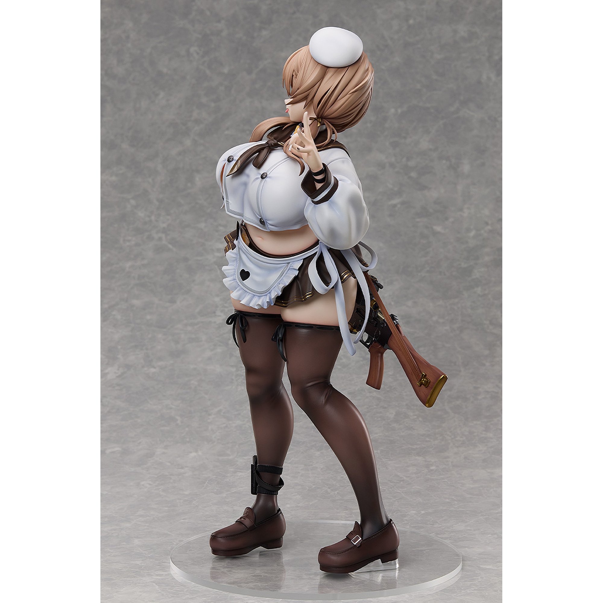 ボリューム感のあるボディラインと衣装の密着感、ストッキングの透け感など、質感表現にもこだわった仕上がりとなっております。